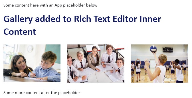 The Gallery App has been added to the Rich Text Editor as Inner Content