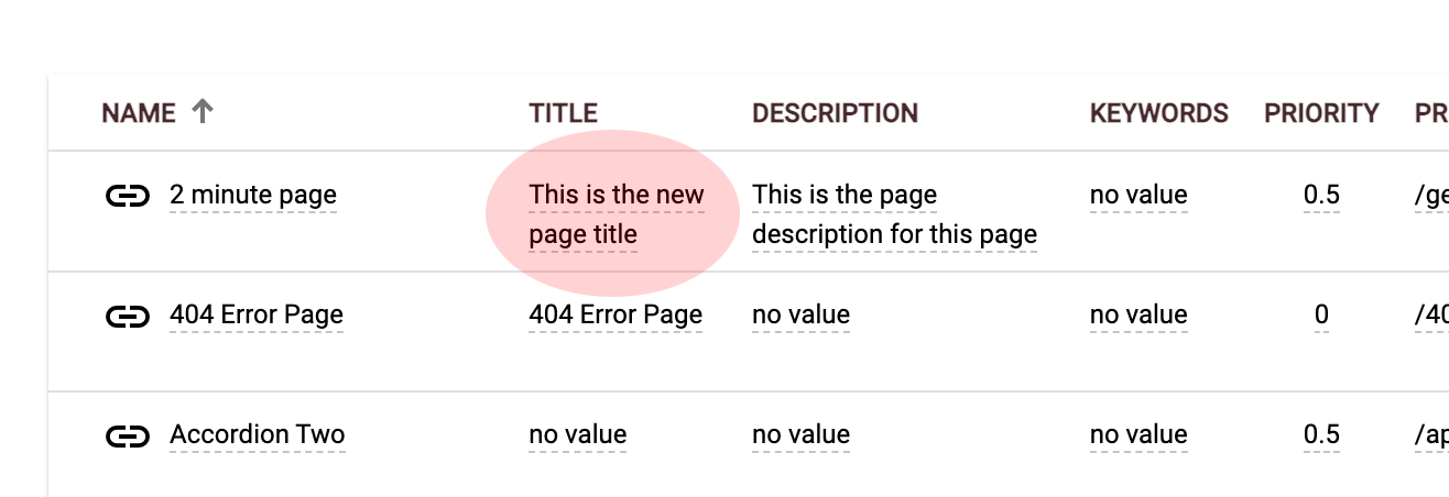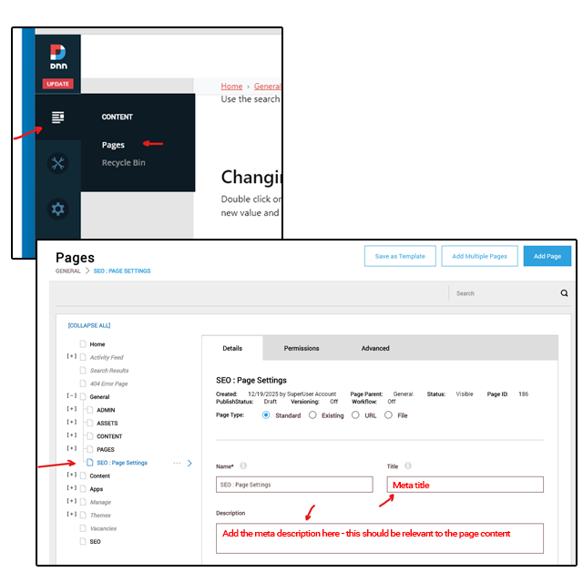 You can also update this information on each page using the page settings. To open these click on the Content > Pages menu option.